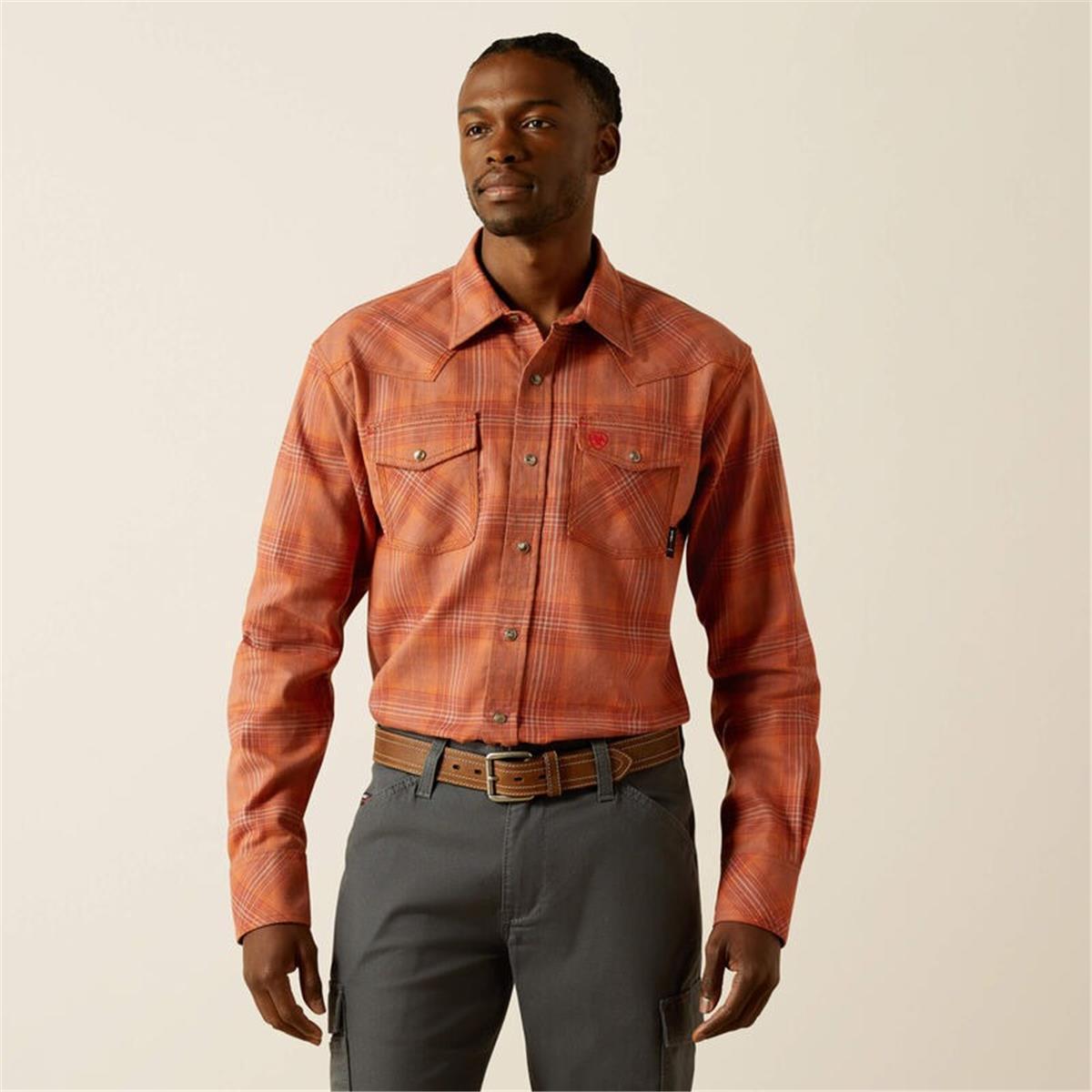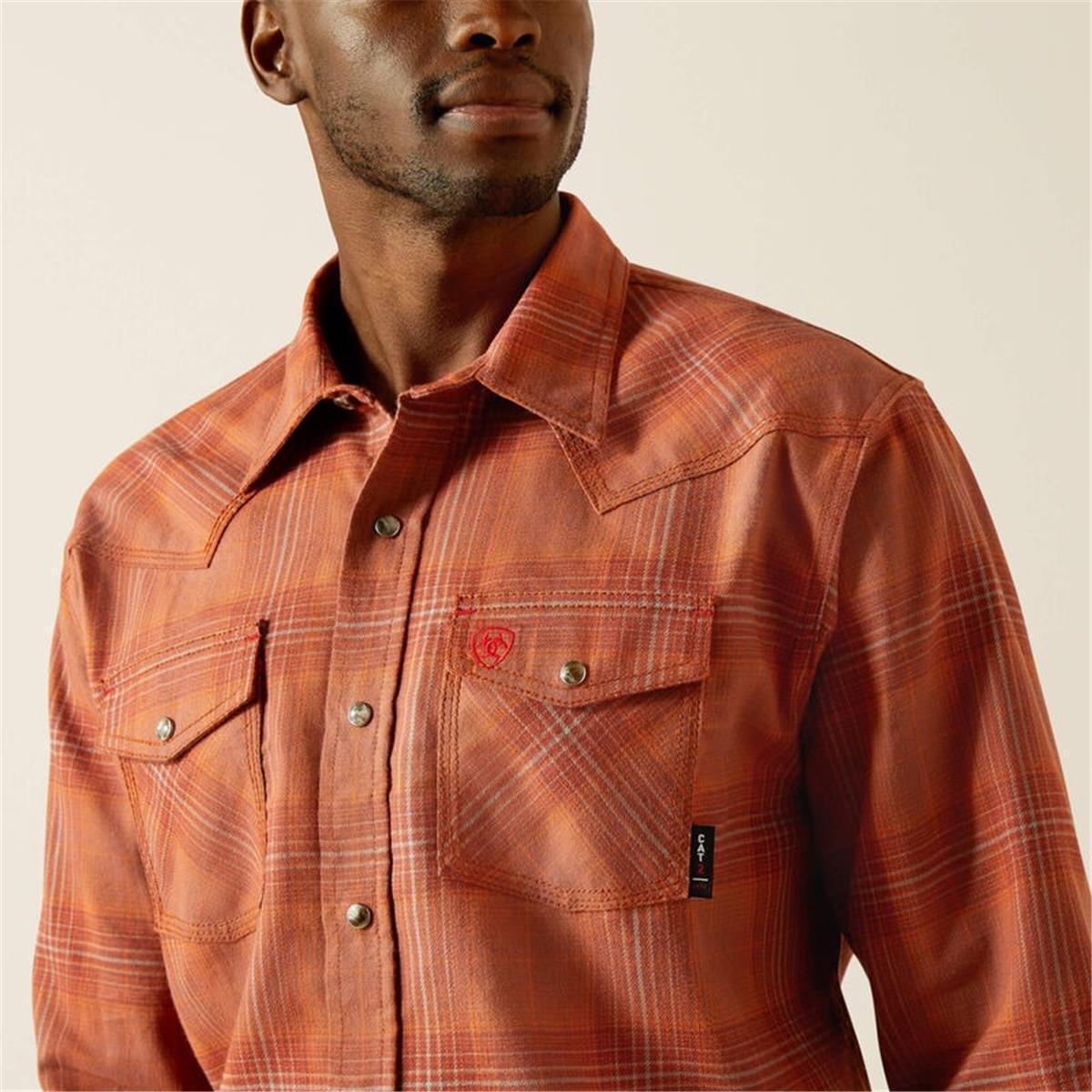 Our flame-resistant, snap work shirts pair iconic Western details with quality construction and a comfortable, more generous fit than our Retro. Built with the safety features you need in hazardous work environments, but works great off the clock too.