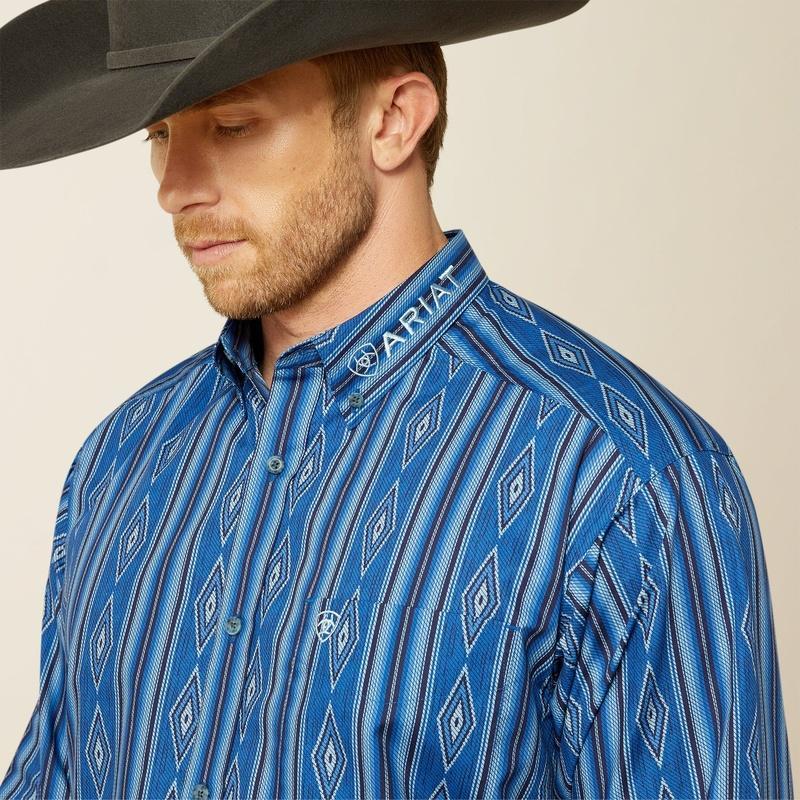 Step into the arena or the office with confidence in the Ariat Team Logo Shirt. Made for those who demand style and performance, this Western shirt features a bold geometric stripe pattern, Ariat branding on the sleeve, and a sharp button-down collar. Built with quality craftsmanship and designed for movement, it’s your go-to for work, competition, and everything in between.