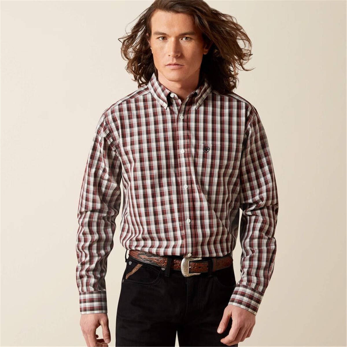 A timeless classic that pairs with everything, this Ariat men’s plaid shirt combines rugged durability with everyday comfort. Designed with a versatile red and white checkered pattern, it features a classic button-down collar and chest pocket for a refined Western look that works for work or the weekend.