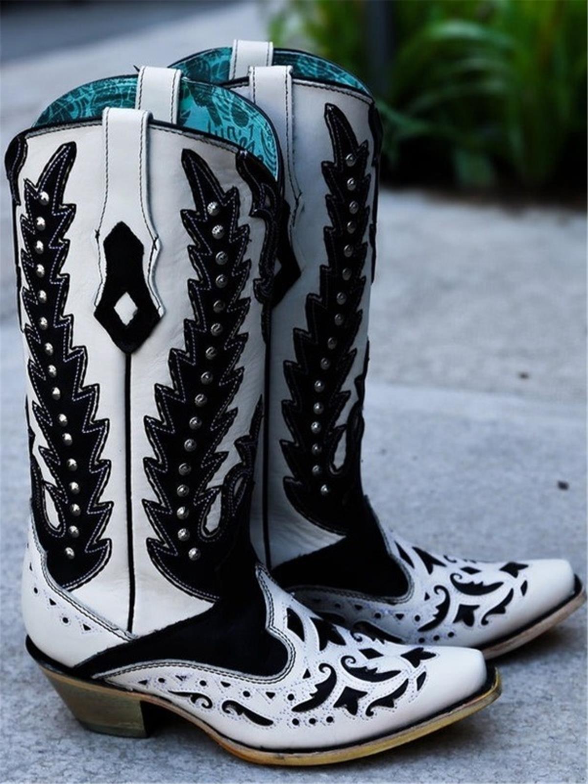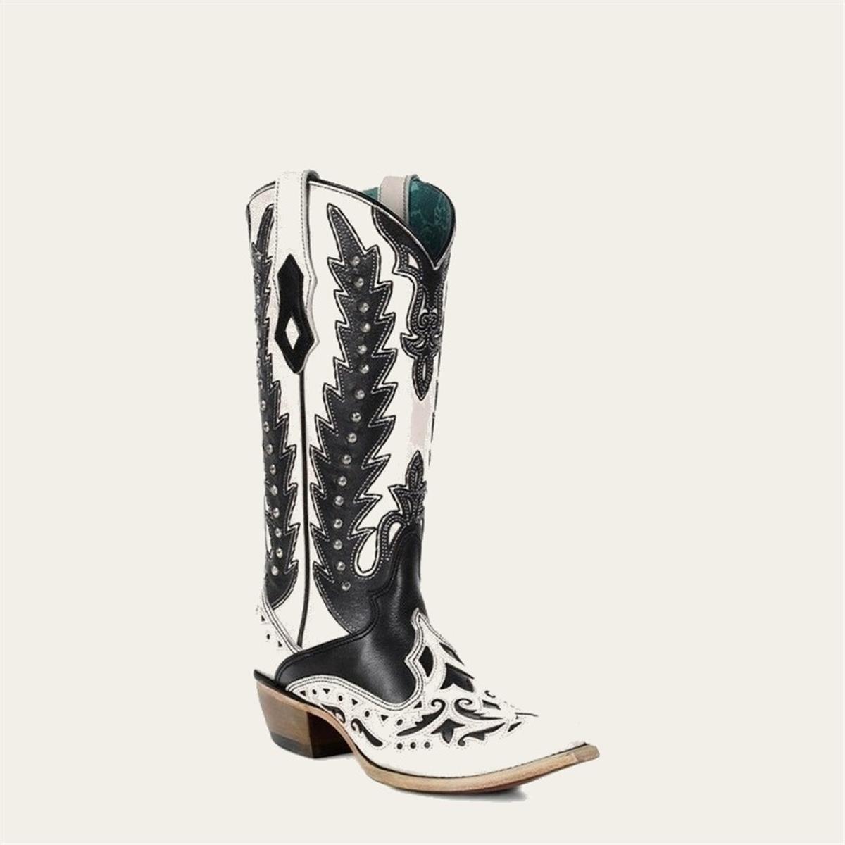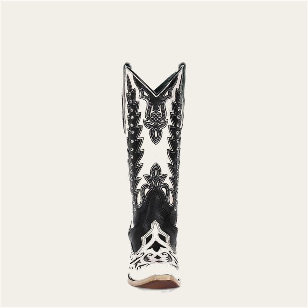 Chic, stunning and gorgeous. Turn heads when you slip into these white and black embroidery boots.