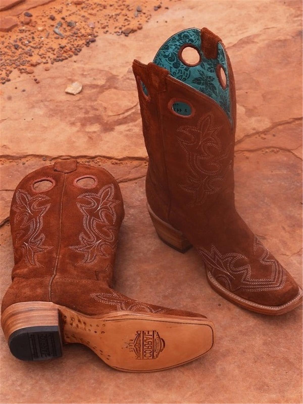 Classic, feminine, and trendy. A classic cowboy boot with a twist the embroidery along the boot gives it that cute western look you wanted.