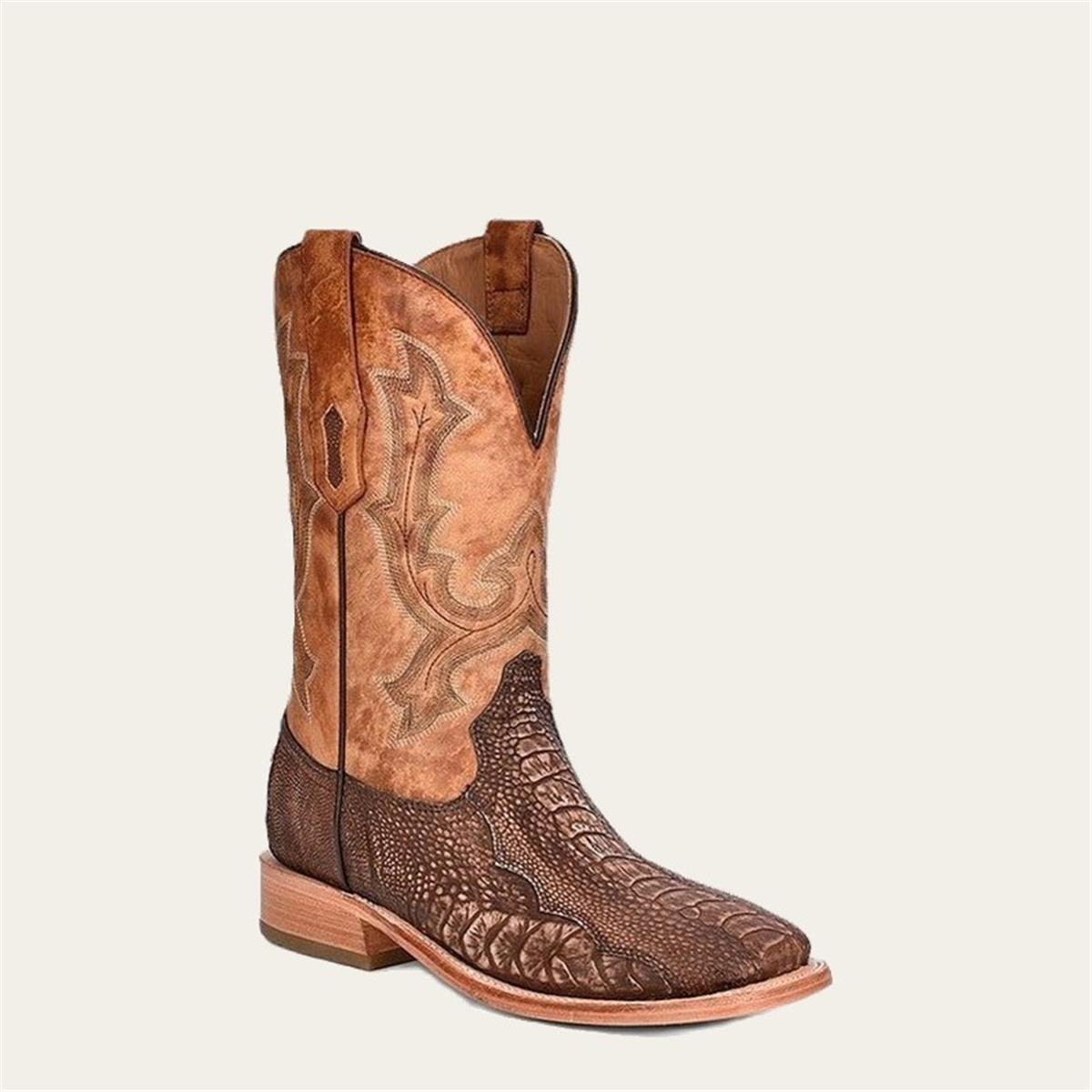 Elegant, rustic, and timeless. Ostrich leg boot with a rustic finish for the cowboy who lives every day to the fullest.