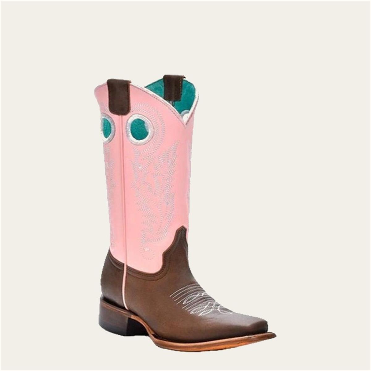 Add a pop of personality to your western wardrobe with this fun and feminine boot. Featuring a striking pink shaft and rich chocolate vamp, it’s the perfect blend of bold charm and classic cowgirl styling.