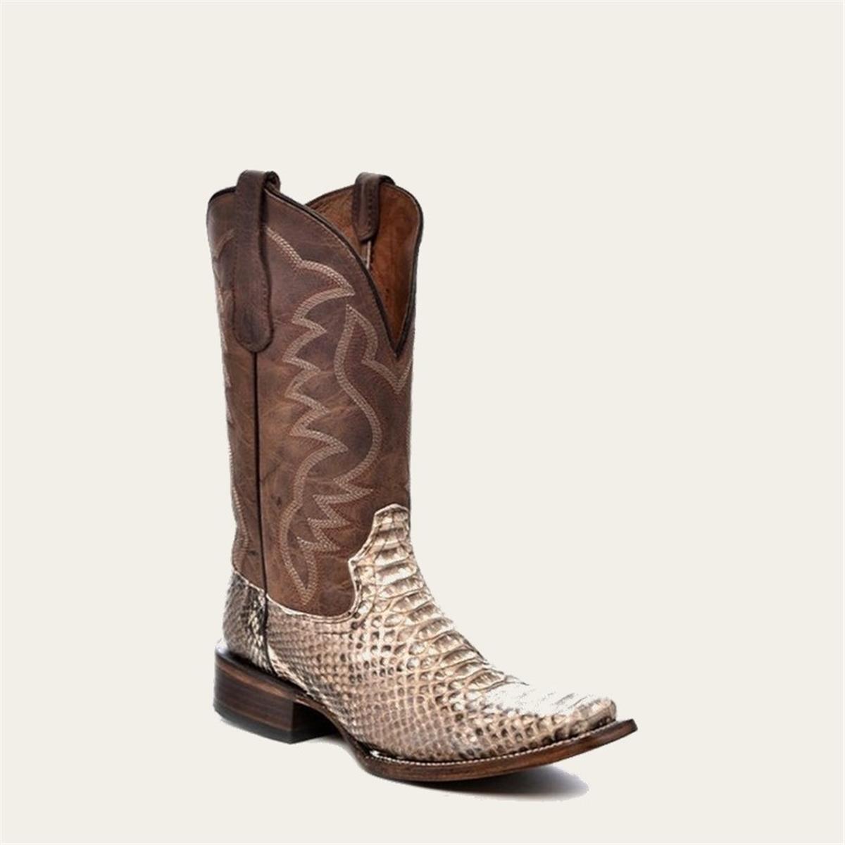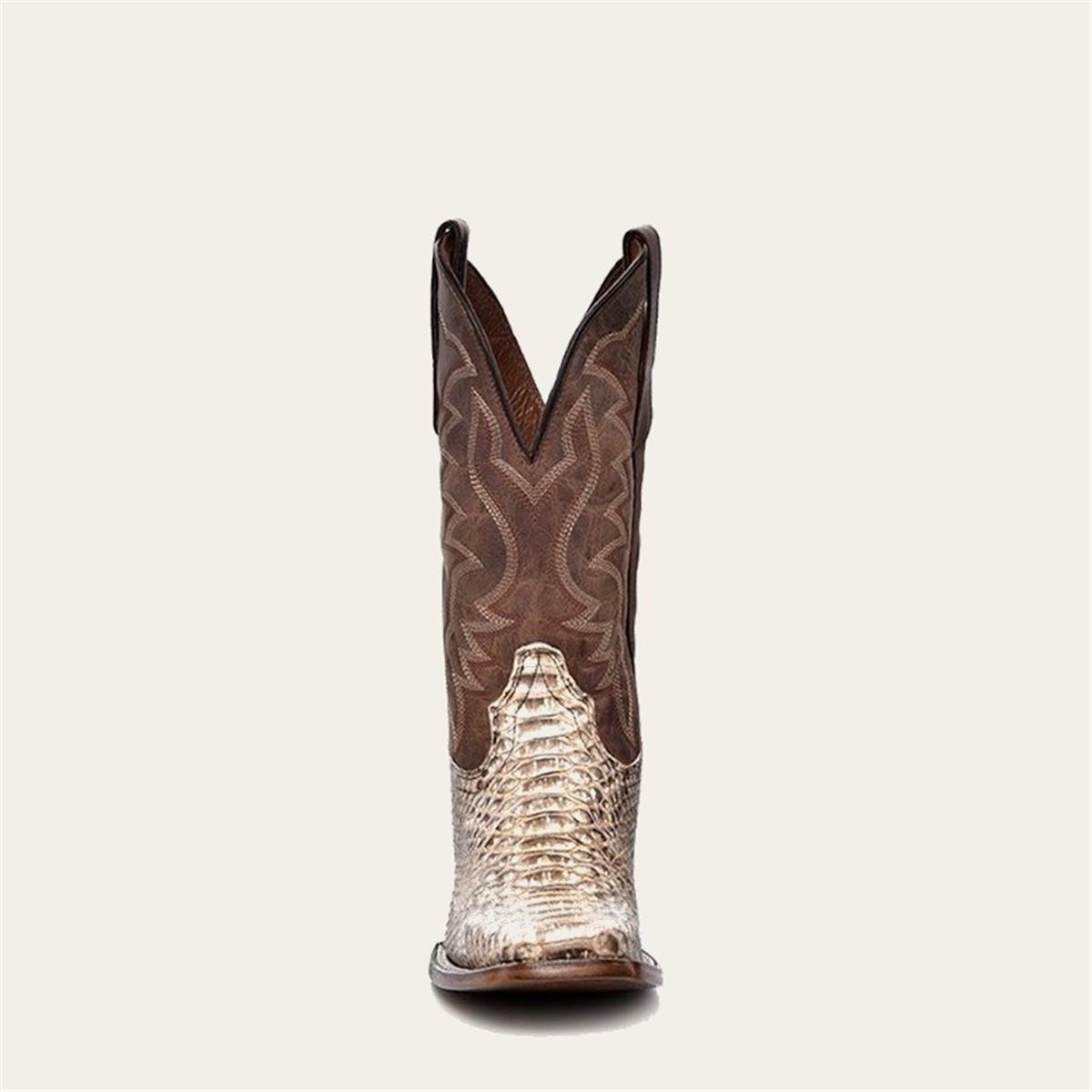 Sophisticated, distinctive, and gallant. The combination of the brown boot shaft with the natural python will catch everyone’s eye adding a touch of elegance to your collection.