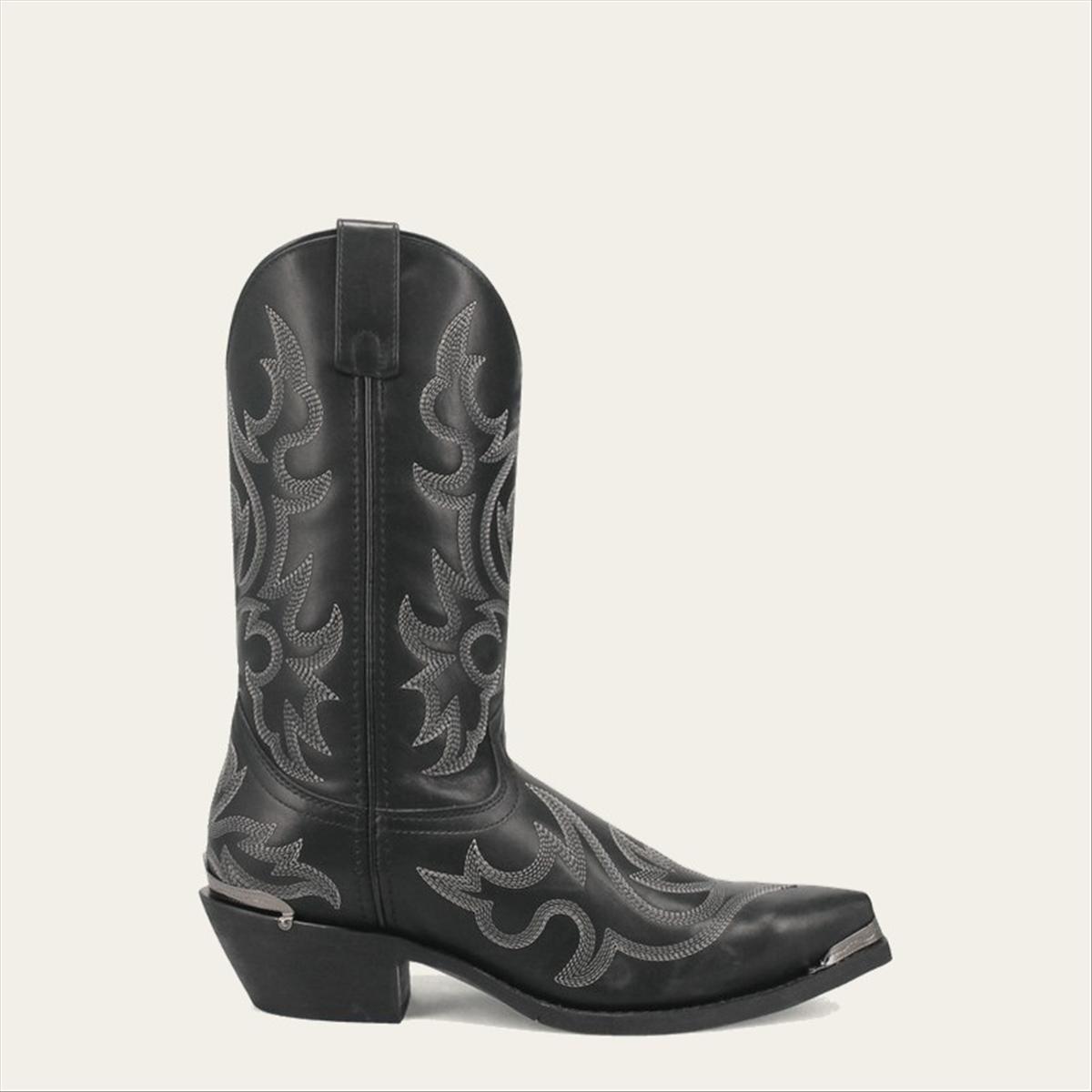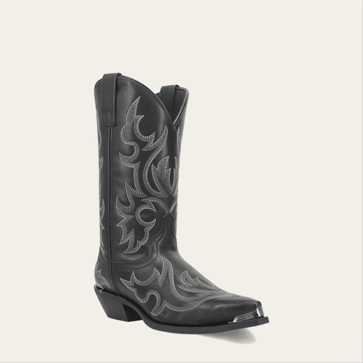 Edgy and ready-made for road or rodeo life, the all-leather Jameson boot from Laredo is tough and hardy. Along with its heel and toe rands, the Jameson asserts dominance with layered stitching, a snip toe, cowboy heel and cushion comfort insole.