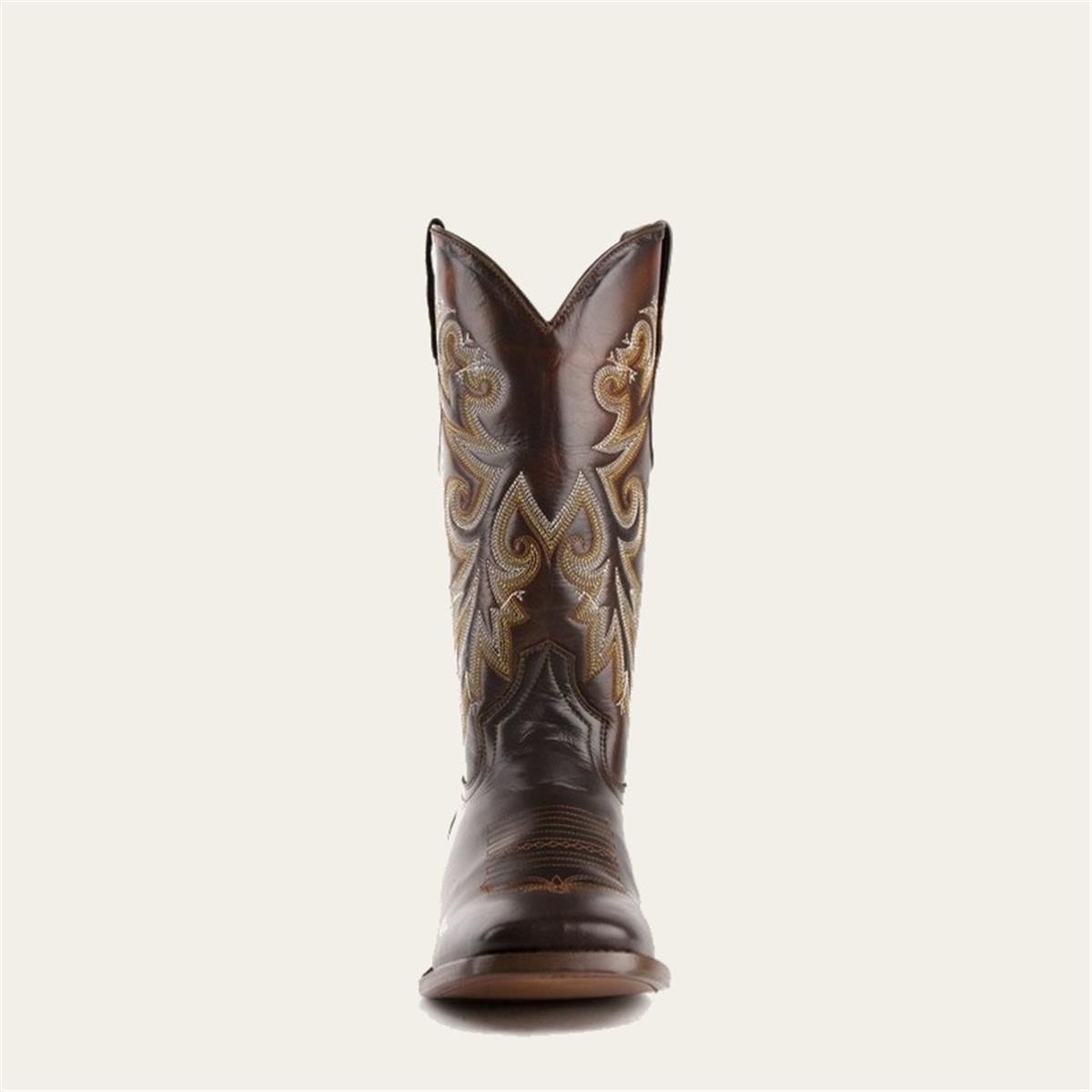 This handcrafted dark chocolate polished leather boot is a notch above your standard cowboy boot. From premium leather to the double stitched welt for reinforced durability you can both look good and have a long lasting pair of boots.