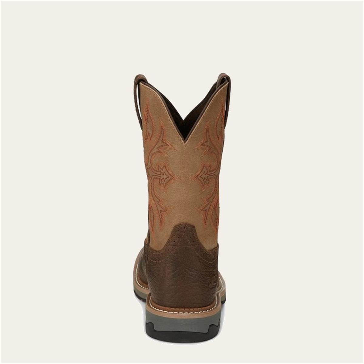 Justin Men’s Bolt 11" Stampede Composite Toe Work Boot SKU SE4103 delivers rugged protection and dependable performance for demanding workdays. Built with durable full-grain leather and a bold Western profile, this pull-on work boot is designed to stand up to long hours on the job while maintaining all-day comfort. The composite safety toe provides lightweight protection, while the Stampede™ dual-density rubber outsole offers reliable traction and resistance to abrasion, slipping, and wear across a variety of surfaces.