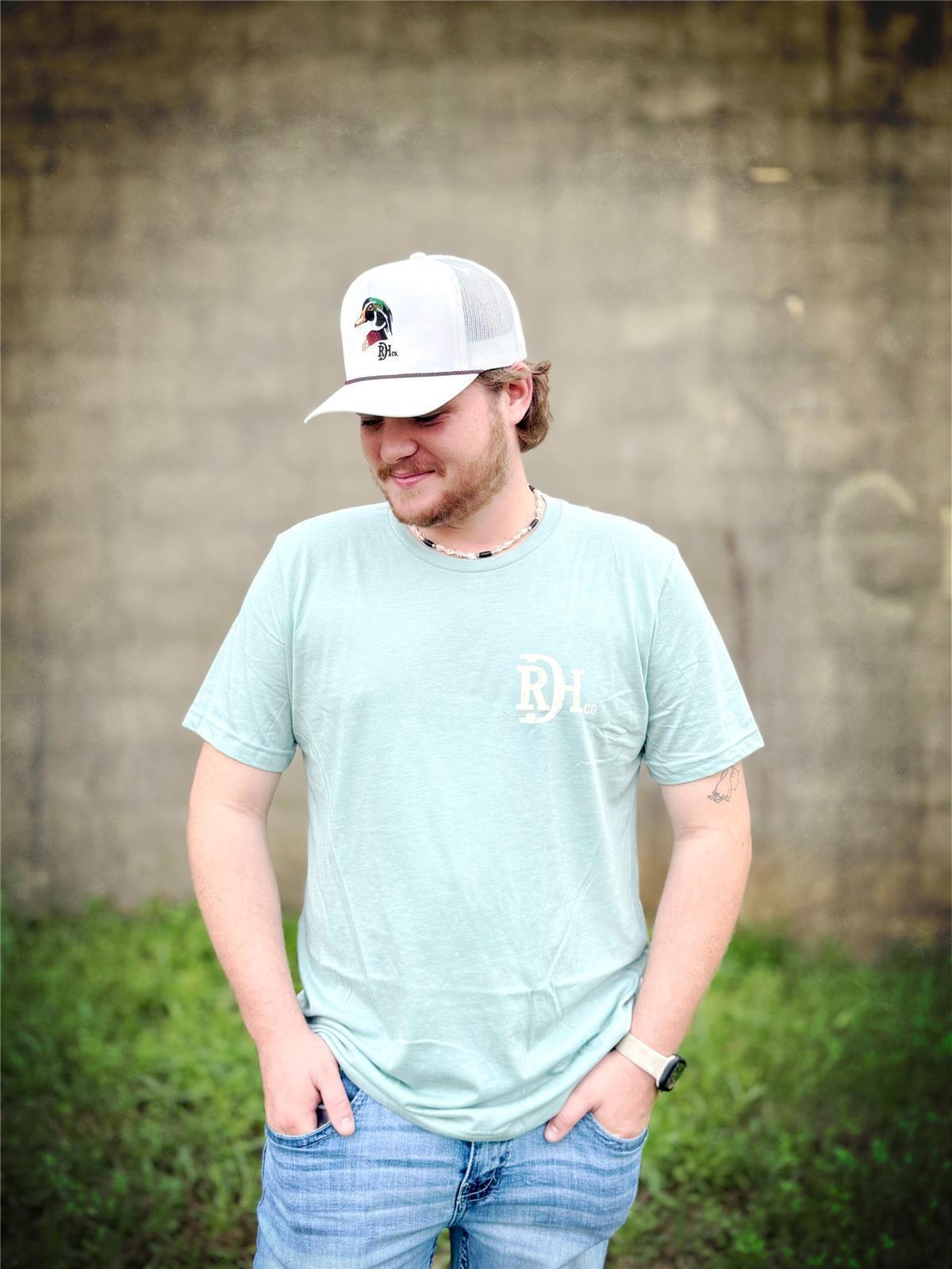 Unisex dusty blue t-shirt featuring the exclusive “Big Duck Energy” design, as well as the signature RDH brand on the front.