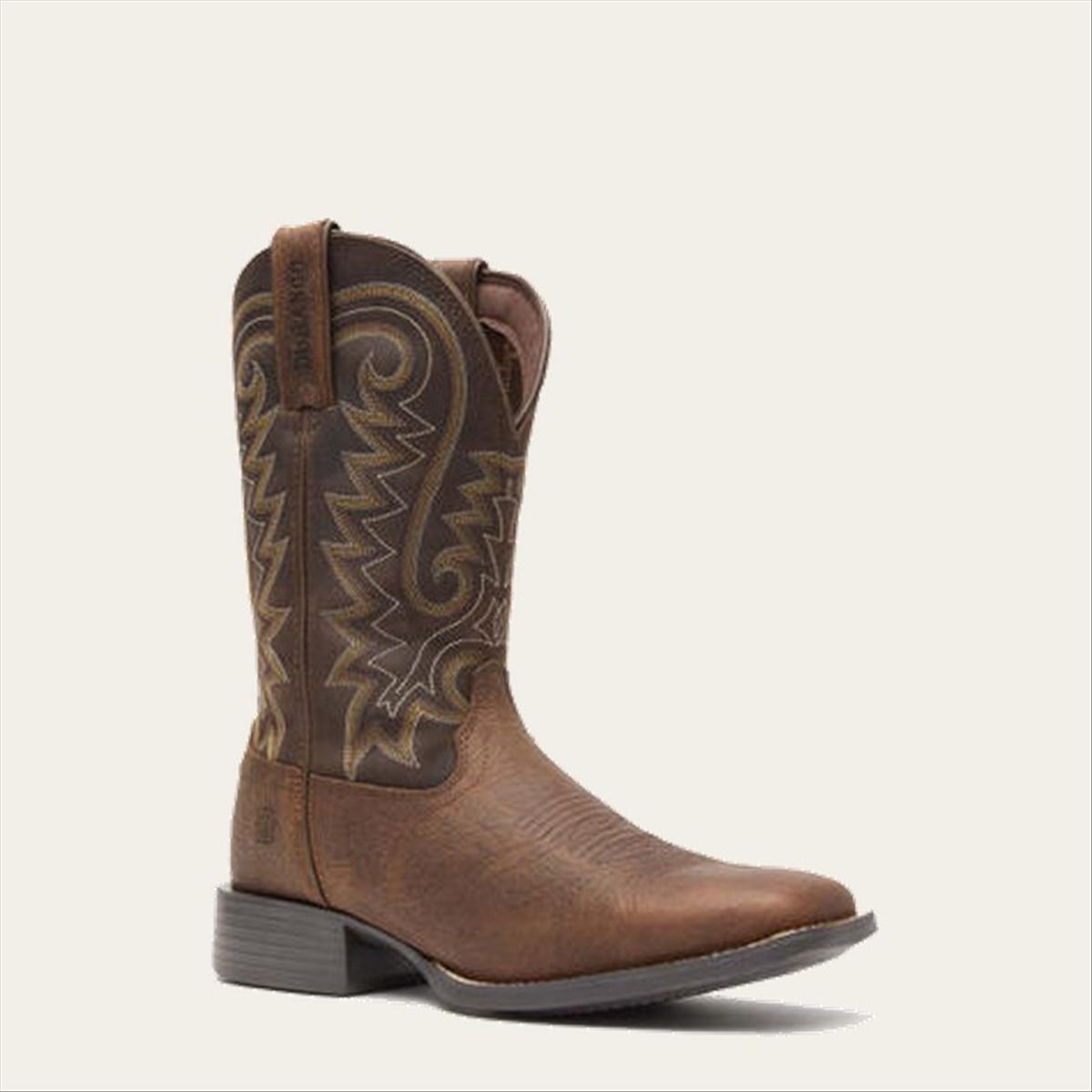 Pull on lightweight comfort and all-day durability in this men’s Durango® 11” Bay Brown Westward™ style. This boot features full-grain leather, soft mesh lining, the Durango® X-Pand System™ for easy on/off, the Durango® Advanced Comfort System Footbed™, a fiberglass shank and a little way shank forepart and shank area for ultimate durability. This style also features a rolled shank area, slip-resisting rubber outsole, double row sole stitch, 1 ½” stockman heel and square toe.