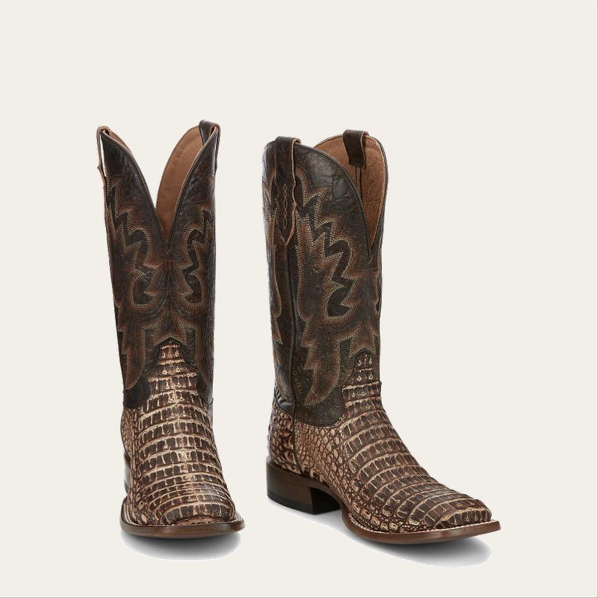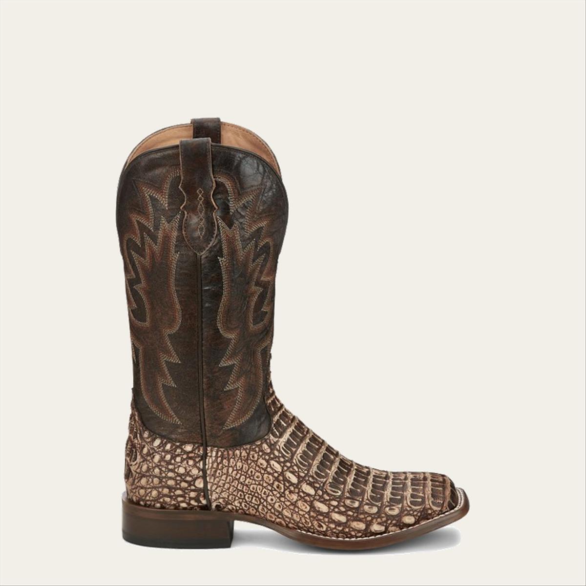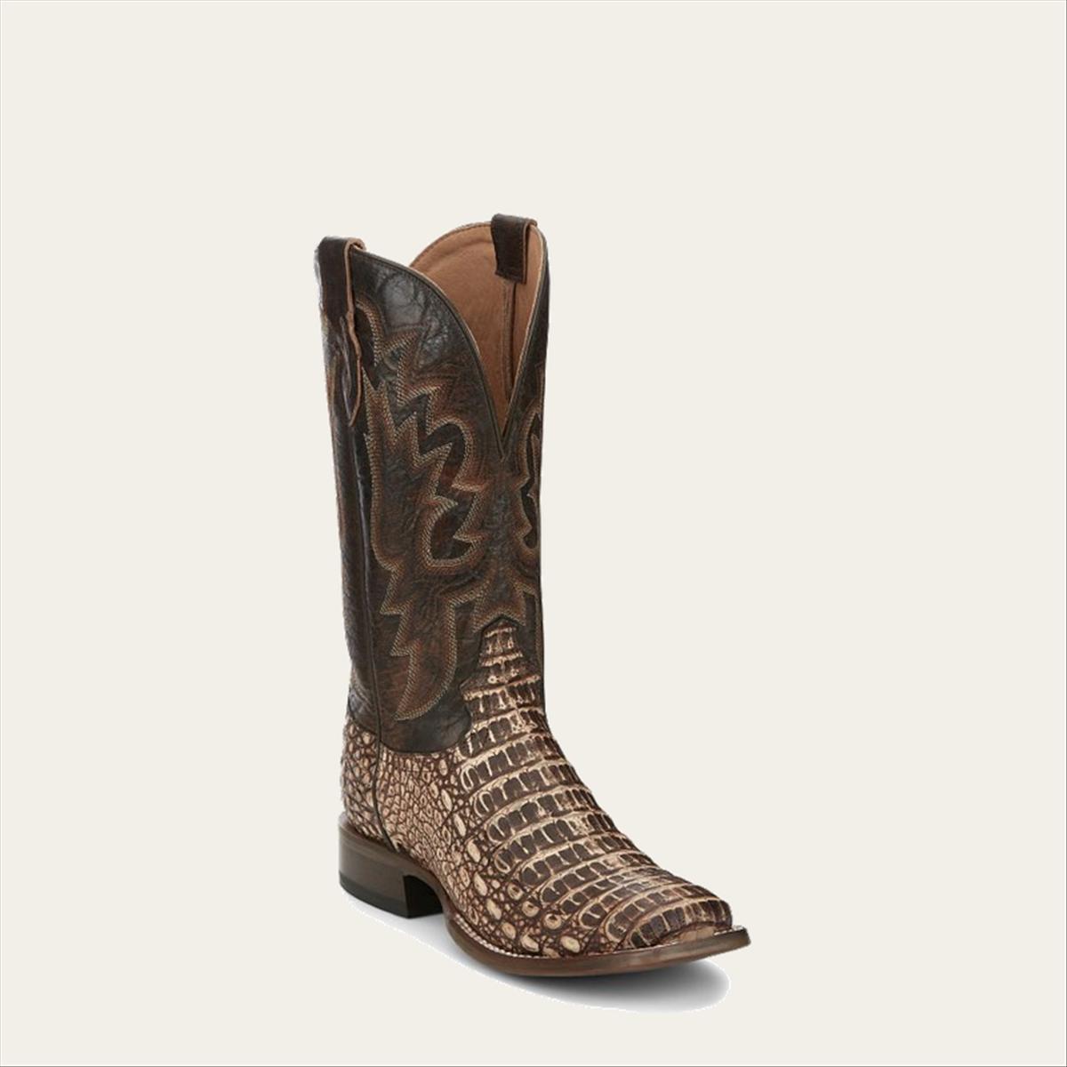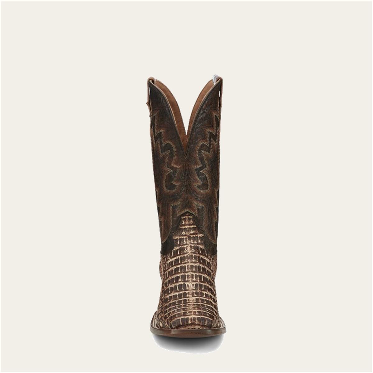 The 13” Mitcham boot from our 1911 collection means business while showcasing Tony Lama’s legendary style. Featuring a caiman leather vamp and a toffee brown goat leather upper with pull straps, this exotic look is sure to turn heads. These boots also include a Removable Cushion Comfort® Insert and an oiled leather outsole for first-class comfort with each and every step.