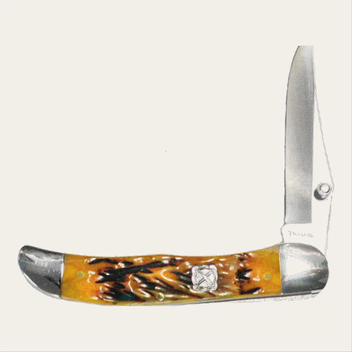 From the makers of Twisted-X boots and wallets comes this exquisite thumb assisted pocket knife. Stainless steel " blade. Twisted-X logo on a yellow wood like body. Belt clip on back.