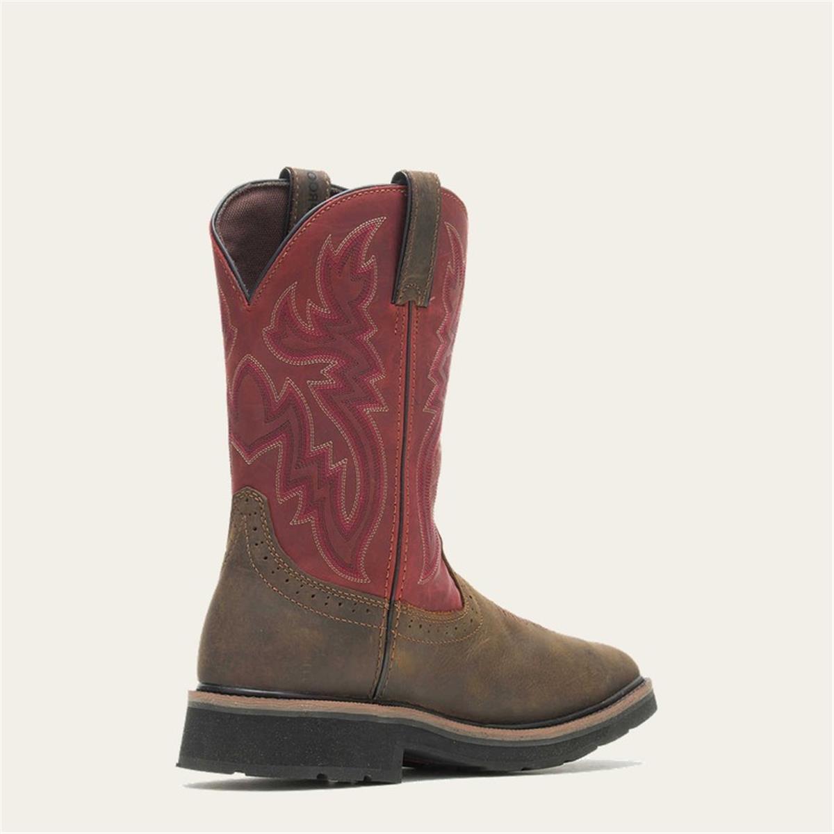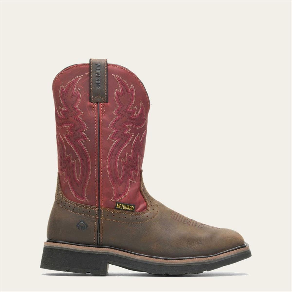Wolverine Men’s Rancher Met Guard Wellington Work Boot SKU W10929 delivers rugged Western style combined with advanced safety and comfort features, making it ideal for demanding work environments. Crafted from premium waterproof full-grain leather, this square-toe Wellington boot offers the classic Western silhouette while incorporating practical details for easy on-and-off wear. The breathable waterproof membrane and moisture-wicking mesh lining keep feet cool and dry throughout long workdays, while the full-cushioned molded EVA footbed and ultra-light compression molded EVA midsole provide lasting comfort and support. Steadfast bon welt construction ensures durability, and the steel shank adds essential stability on uneven terrain.