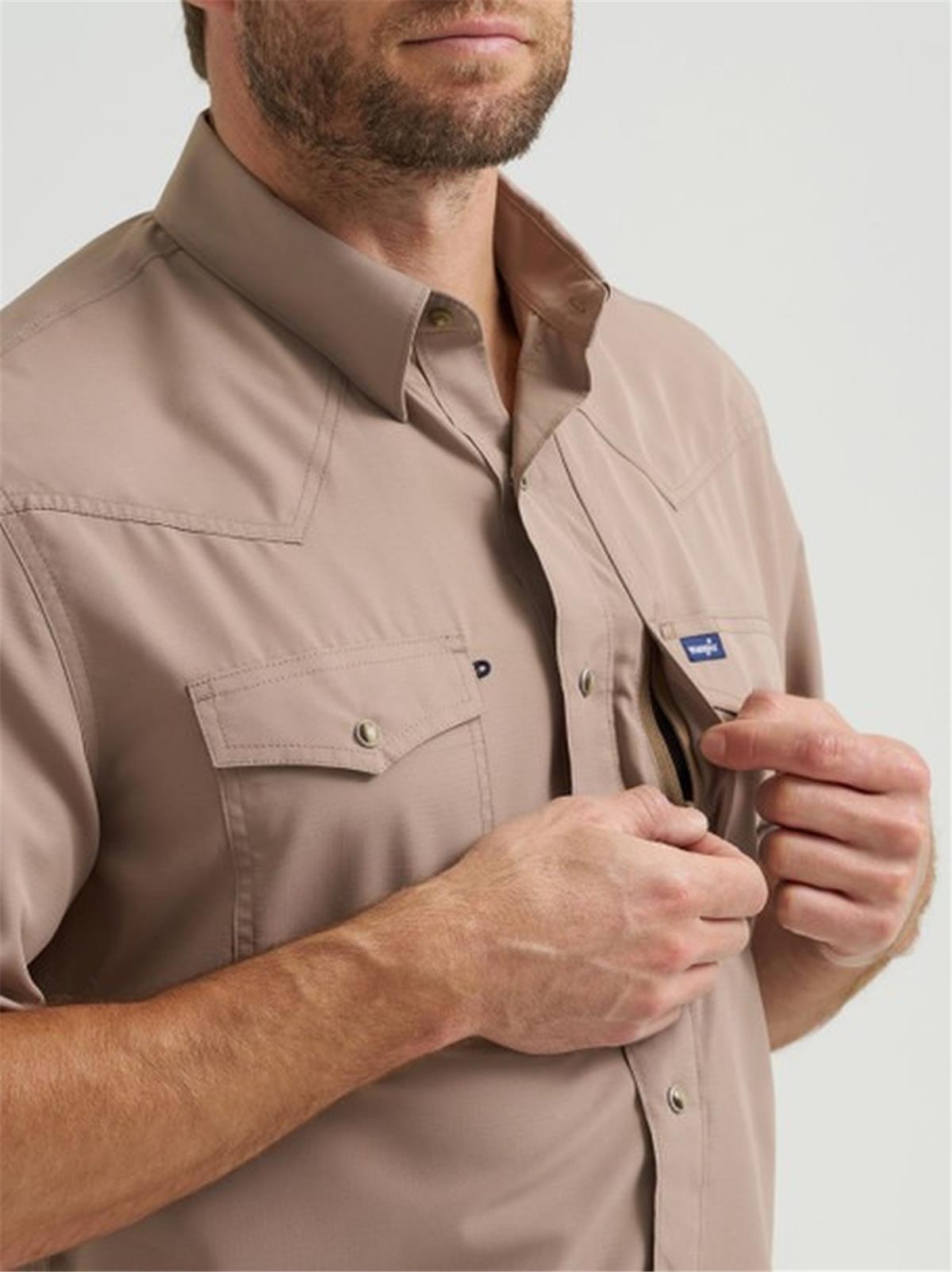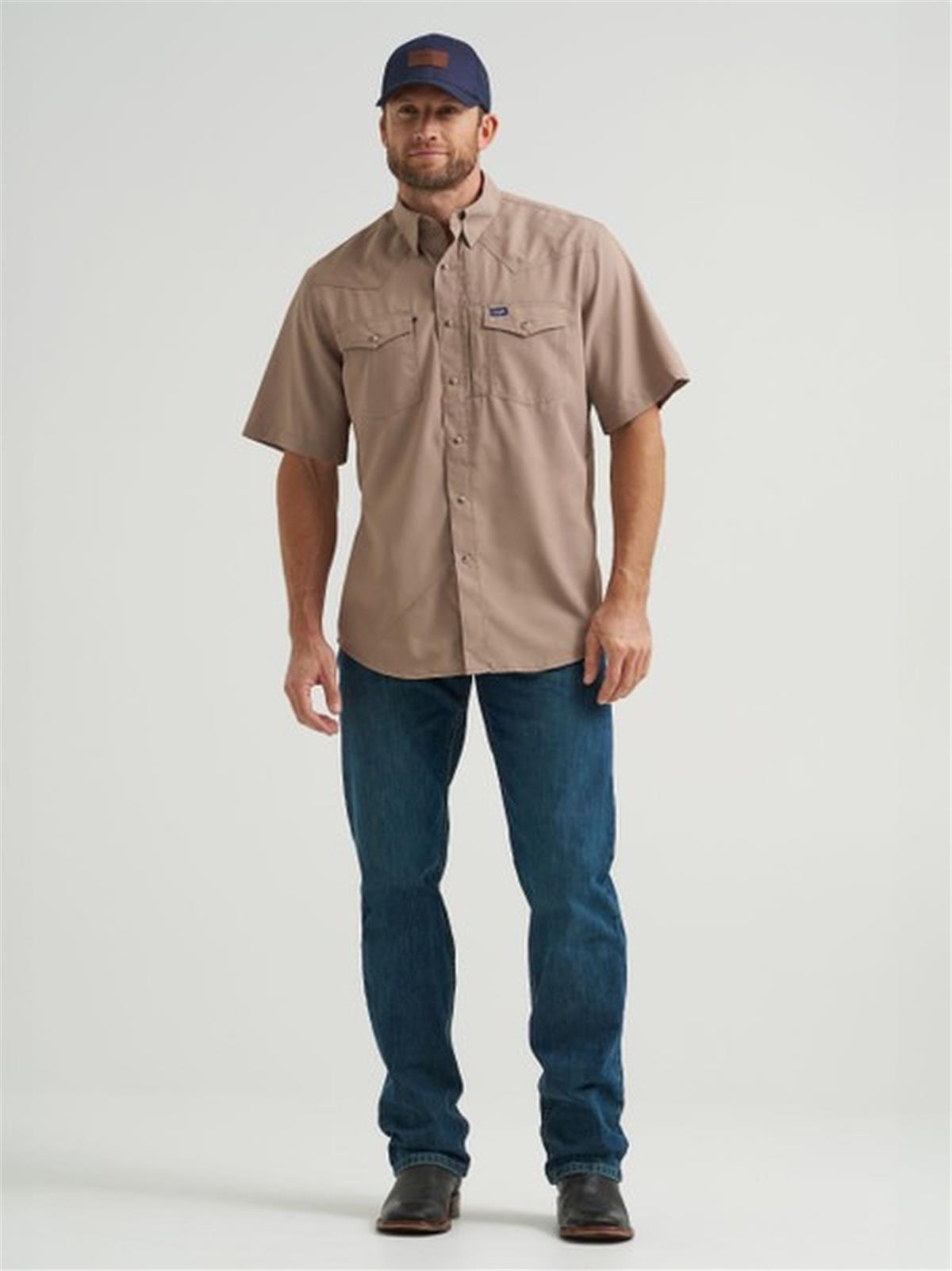 Built to take on everything you do in a day, the Men’s Wrangler® Performance Snap Short Sleeve Solid Shirt is as reliable as they come. It comes fully loaded with moisture-wicking and UV protection as well as back vents for breathability, sleeve keepers, and a sunglass cleaning cloth at the hem. It’s made of a lightweight performance fabric to keep you comfortable. Plus, two chest flap pockets, one-point yokes, and snaps deliver the Western authenticity you want.